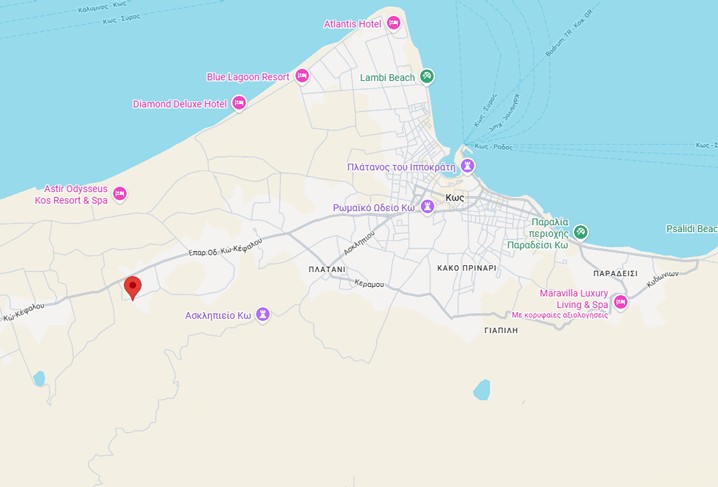 Το οικόπεδο αφορά μερίδα γαιών Κω-Εξοχής, έχει επιφάνεια 5.300τμ και βρίσκεται σε εκτός σχεδίου δόμησης περιοχή. Είναι άρτιο και μη οικοδομήσιμο, δεν διέρχονται εναέριες γραμμές μεταφοράς υψηλής τάσης της ΔΕΗ, δεν διέρχεται ρέμα εντός αυτού και έχει απόσταση από την θάλασσα περί τα 1.700μ.
